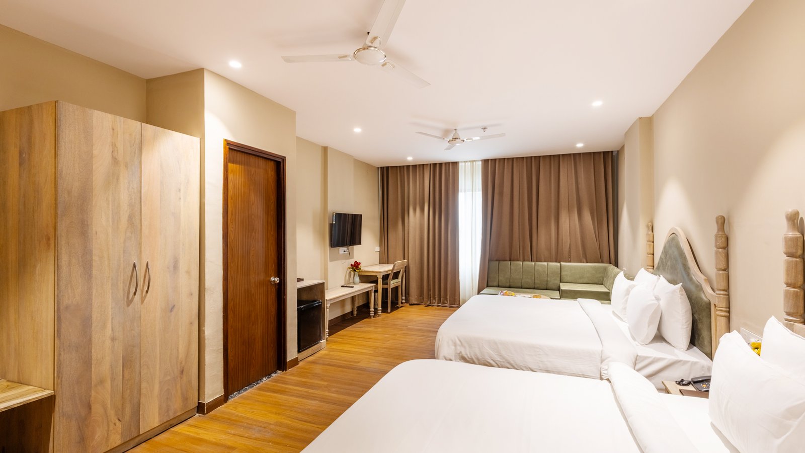 The rooms at Pallacia Hotel are thoughtfully designed, blending modern comfort with timeless royal charm. Each room offers a serene retreat, ensuring a luxurious and restful stay.
